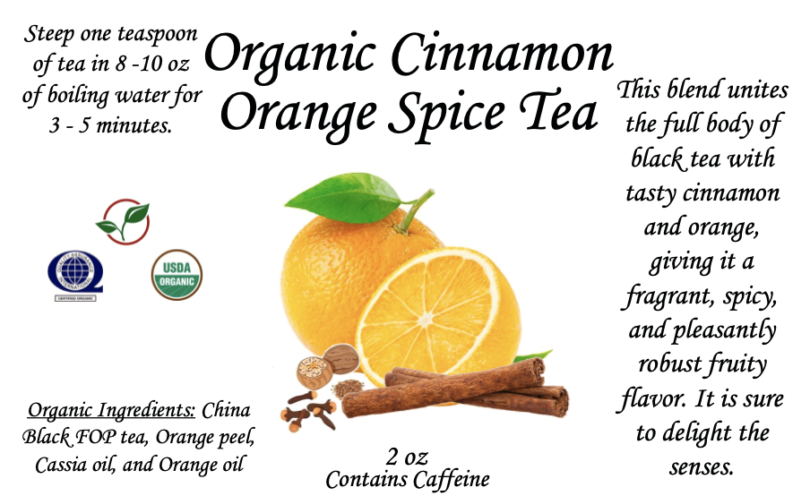 China Black FOP Tea, Orange Peel, Cassia Oil, and Orange Oil