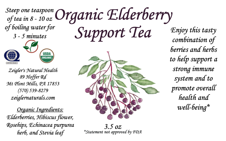 Elderberries, Hibiscus Flower, Rosehips, Echinacea Purpurea Herb, and Stevia Leaf