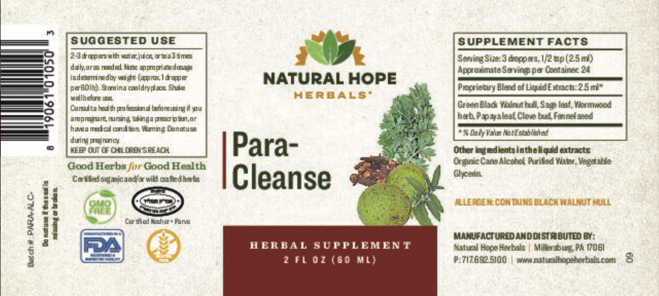 Fresh Green Black Walnut hull, Fresh and Dry Sage leaf, Wormwood herb, Papaya leaf, Clove bud, Fennel seed, Organic Grain and/or Cane Alcohol, Purified Water, and Vegetable Glycerin.