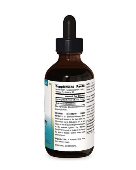 Elderberry Fruit & Flower Extract (1:8), Deionized water and Grain Alcohol (35-45%).